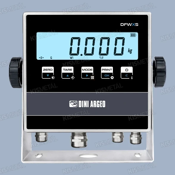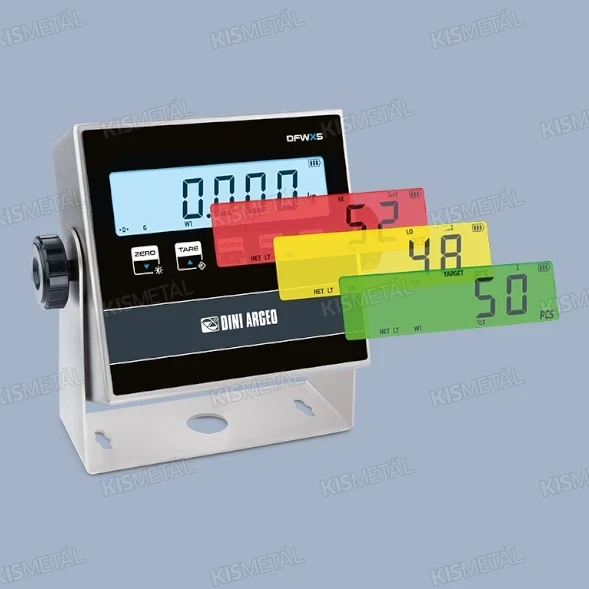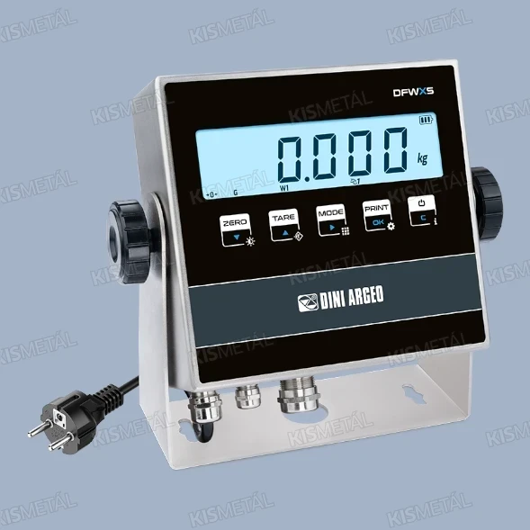 Professzionális, kompakt DFWXS IP68/IP69K saválló mérlegkijelző, ipari környezetre tervezve. Rozsdamentes acél házának és magas védettségének köszönhetően nedves, intenzíven tisztított környezetben is megbízható. Interaktív, RGB háttérfényes kijelzője és többféle kommunikációs lehetősége révén könnyen illeszthető számítógéphez, nyomtatóhoz vagy PLC-hez, és ideális tömegkijelzésre, tömeg-átváltásra, ellenőrző mérésre és darabszámlálásra is.