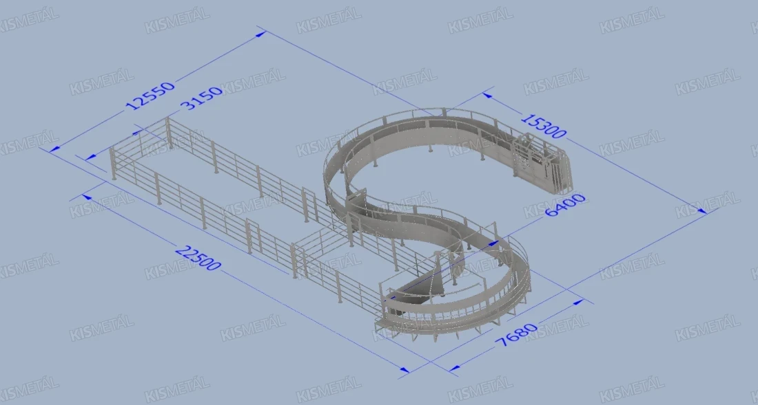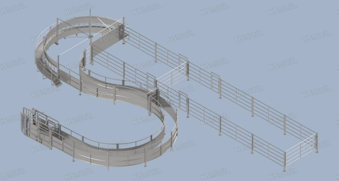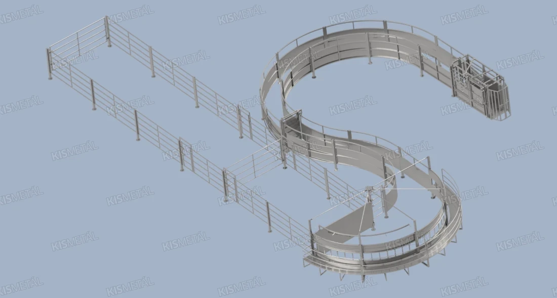 A szorítóívek biztonságosan irányítják az állatokat az itatóhoz, mérőálláshoz vagy kezelőfolyosóra.