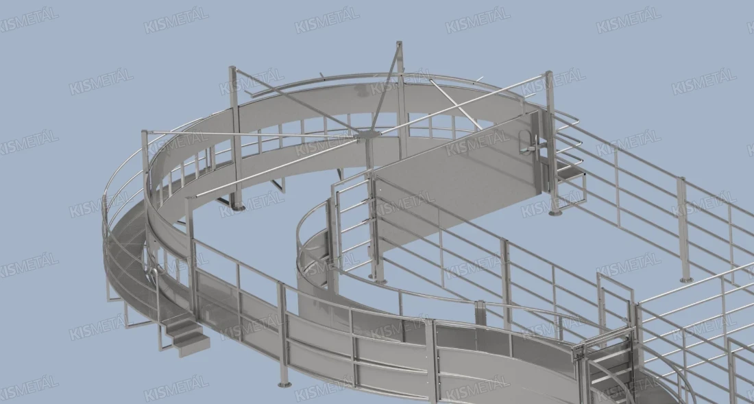A masszív acélszerkezet alsó részét lemezborítás fedi, amely megnöveli az állatokkal való közvetlen érintkezési felület védelmét, valamint minimalizálja a szorulás vagy sérülés veszélyét.
